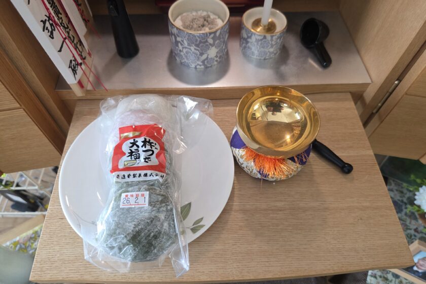 そして、毎日の供物を欠かしません。必ず備えているのが、思い出の象徴である「杵つき大福」です。